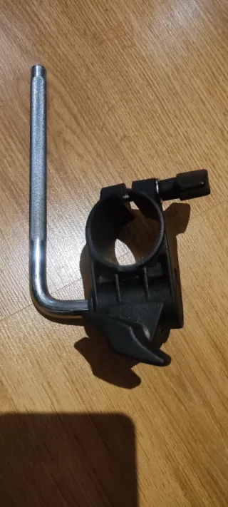 Herraje y abrazadera de la marca Roland. Pieza metálica y de plástico negro. - Abrazadera ajustable. - Herraje con acabado cromado. Pedal, Tom, batería, electrónica, eléctrica, plato, Crash, caja, bombo, hi-hat, Roland, Millenium, Yamaha, Alesis, Carlsbro, Oqan, módulo, rack, splash