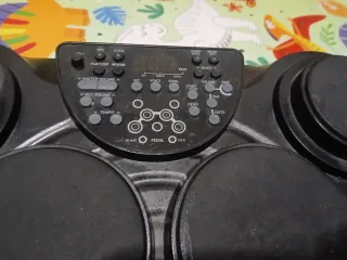 Como nueva. Más de 500 diferentes sonidos, 45 sets pre programados, incluyendo 15 programables 80 pistas de acompañamiento y clic track programable Salida de auriculares Conexión AUX-in para reproductor de Mp3, iPad, etc.. Dos salidas estéreo para la conexión a sistema de PA o estudio Conexiones MIDI IN y MIDI OUT además de dos conexiones para triggers Conexión USB para su uso en el PC y para la grabación 1 x torre con pad de 9” para bombo 1 x Pad Dual Zone de 9” para caja 3 x Pads Dual Zone de 9" para Tom 1 x Pad de 10" para Hi-Hat + pedal 1 x Pad de 12" para plato Crash 1 x Pad de 14” para plato Ride. Pedal de Bombo Dixon incluido