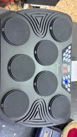 Batería electrónica portátil con múltiples pads. - Diseño compacto y ligero. - Pads sensibles al tacto. - Pantalla digital integrada. - Conexión USB.