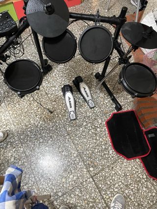 Batería electrónica Alesis en buen estado. Incluye dos pedales. Es ideal para practicar en casa. - Marca: Alesis - Incluye 2 pedales - Perfecta para principiantes - Pedal de bombo y charles - Posibilidad de conectar auriculares y USB - Sopoete completo y cables