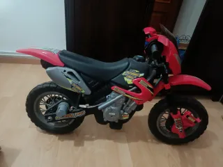 Moto eléctrica infantil con diseño inspirado en Marc Márquez y el equipo Repsol original. Usada en 5 ocasiones contadas. Medidas: 114x53x62. Duracion bateria casi 2 horas, dependiendo de si la usas con pendientes, radio, etc... - Potencia de 12V. - Colores blanco, naranja y negro. - Ruedas con detalles naranjas. Y ruedines de aprendizaje incluidos.