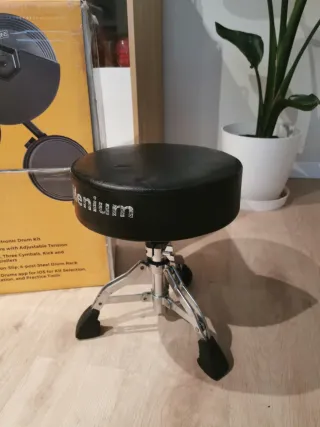 Taburete, baquetas, pedal y mas para niños. Todo por €50. - Taburete de batería (altura máxima 40cm) €20 - Pedal de bombo. €20 - Un par de baquetas €5 - Un platillo y soporte €15 - máquina electrónica para aprender ritmos €15