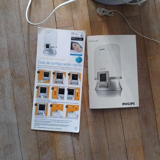 Despertador con luz de simulación de amanecer. - Diseño cilíndrico. - Panel frontal con pantalla y botones de control. - Cable de alimentación incluido. - Sonidos de naturaleza, río y mar - Batería recargable, salta en caso de apagón Lo usó muchos años una persona casi totalmente sorda, pero funciona perfectamente. Se envía o se entrega en La Navata (Galapagar).