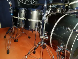 Se vende cuerpo de batería acústica en color negro. Ideal para iniciarse con un tu set de percusión a precio muy reducido. Incluye bombo de 22, timbal de 14 y base de 16. Parches Evans de doble capa. -Opcional caja Tama metálica: +75€