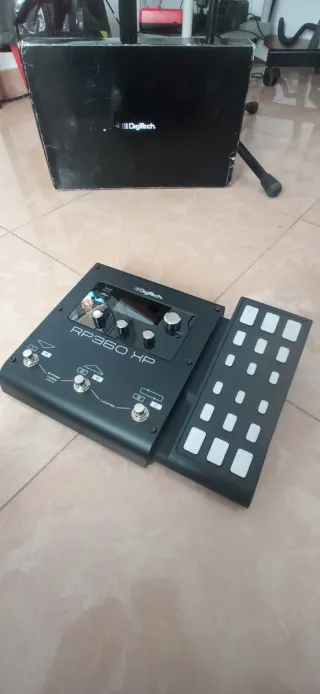 Pedalera multiefectos Digitech RP360XP en color negro. Diseñada para guitarristas, ofrece una amplia gama de efectos y simulaciones. - Controles giratorios y pantalla digital. - Pedal de expresión integrado. - Múltiples footswitches para control de efectos y presets.