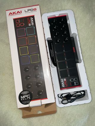 Controlador de pads Akai LPD8 para laptop. - 8 pads sensibles a la velocidad. - 8 perillas Q-Link asignables. - Diseño compacto y portátil. COMPLETAMENTE NUEVO!