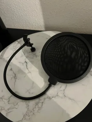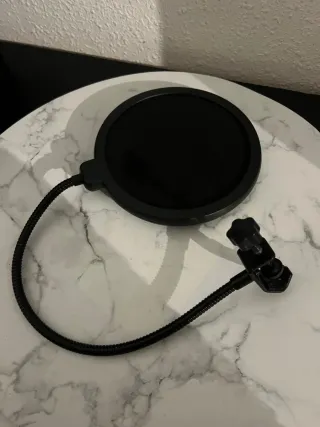Filtro anti pop para micrófono, perfecto para home studio, podcast, streaming o grabación de voz. Con brazo flexible y pinza de sujeción. Buen estado general. Diámetro aprox. 15,5 cm.