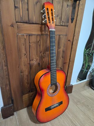 Guitarra clásica de color madera , en buen estado. - Cuerpo de madera. - Diapasón de madera oscura. - Clavijas en buen estado. - Acabado brillante. - Mide 97 de alto - Era para un regalo pero nunca lo llegué a dar esta sin utilizar .