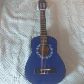 Guitarra acústica para niños, de color azul. Es una guitarra pequeña y ligera, ideal para principiantes. - Marca: Rocío - Color: Azul