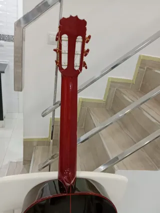 Guitarra flamenca de la marca Hnos. Sanchís López, Rafael cortes palo santo del año 2020. Este modelo es más alto de gama que las extras P.V.P 3990€ el estado es impoluta no un solo rasguño.Presenta un acabado en color rojo vibrante y detalles oscuros en los laterales y mástil. - Cuerpo de madera. - Mástil de madera oscura. - Clavijero dorado.