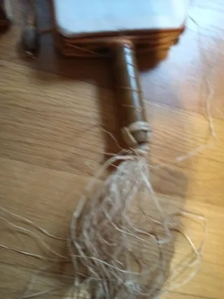 Set de dos tambores de bola Den-Den Daiko, también conocidos como tambores de cascabel. - Cada tambor tiene un cuerpo cuadrado con una piel tensada. - Los mangos están decorados y envueltos en cuerda. - Cuelgan flecos de fibra natural. - Incluyen cuentas de madera y semillas decorativas. -Precio por pareja