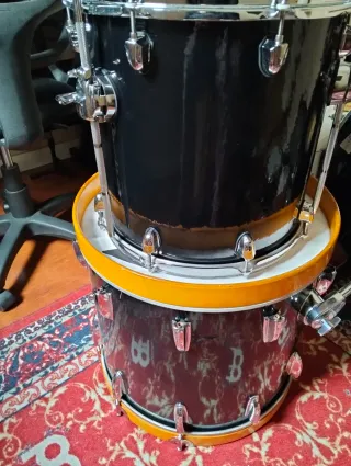 Se vende batería Mapex Saturn. - Color negro brillante. - Aros de madera en color naranja. - Tom 14x14, 10x7 y bombo 16x14 (el bombo es de haya alemana de un casco honsuy) se ha vinilado reciémente. Solo entrega en mano, no hago envíos.