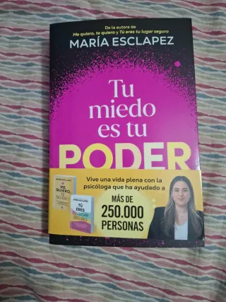 Libro Tu miedo es tu poder de la autora María Esclápez. 1 o 2 páginas subrayadas a lápiz muy suave. El resto no me dio tiempo de leerlo - Tu miedo es tu poder es un libro de autoayuda. - Me quiero, te quiero y Tú eres tu lugar seguro son otros títulos de la autora. - La psicóloga ha ayudado a más de 250.000 personas.