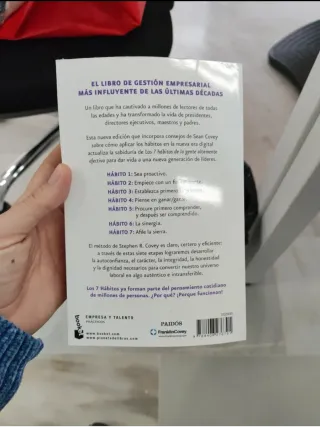 Se vende libro de Stephen R. Covey "Los 7 hábitos de la gente altamente efectiva". Tiene una pequeña raya en la parte trasera como se ve en la foto.