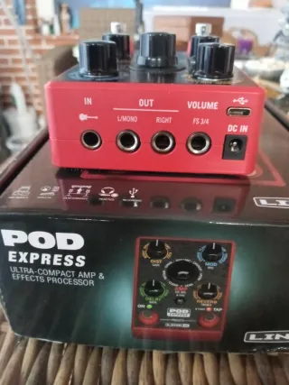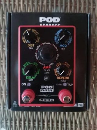 Pedalera multiefectos Line6 Pod Express para guitarra. Diseñada para guitarristas que buscan versatilidad y calidad de sonido. - Controles de amplificador, modulación y efectos. - Botones de footswitch para control de presets y tap tempo. - Diseño compacto y robusto.