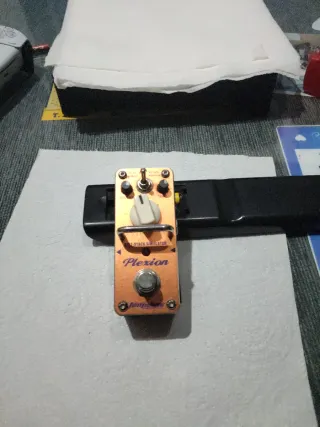 Pedal de efectos de guitarra TOMSLINE PLEXION. - Color naranja metálico. - Controles de volumen, tono y ganancia. - Interruptor de palanca. - Botón de efecto metálico.