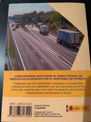TEST Y SUPUESTOS PRÁCTICOS: COMPETENCIA PROFESIONAL DE TRANSPORTE DE MERCANCÍAS Contenido: Todos los test y casos prácticos necesarios para superar con éxito el exámen de competencia profesional de mercancías por carretera. ISBN: 84-933-174-03. BASADO EN EL ÚLTIMO BANCO DE PREGUNTAS PUBLICADO POR EL MINISTERIO DE TRANSPORTES ESTE LIBRO RECOGE TODAS LAS PREGUNTAS Y SUPUESTOS PRÁCTICOS QUE HA PUBLICADO EL MINISTERIO DE FOMENTO Y QUE SE UTILIZAN EN LOS EXÁMENES DE TODAS LAS COMUNIDADES AUTÓNOMAS, CLASIFICADAS, ORDENADAS Y CORREGIDAS **NUEVO SIN USAR**