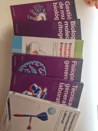 Libros de 1° del Grado Superior de técnico en Laboratorio Clínico y Biomédico. Cada libro son 12€ pero si se compran todos juntos el total sería de 50€.