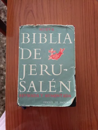 La Nueva Biblia de Jerusalén revisada y aumentada, está en muy buen estado excepto el forro, pero la biblia está perfecta por dentro y fuera.