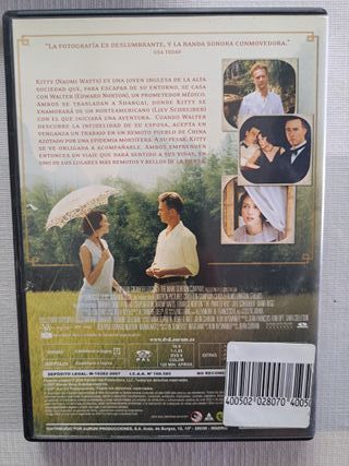 PEDIDO MINIMO 3 DVD X 6 €, NO REBAJO MAS: o ELIGE 6 DVD X 10 € Y CON 6 TE REGALO ADEMAS UNA PELICULA ELEGIDA POR MI EDICION CARTON O SLIM- NO ACEPTARE OTRAS OFERTAS. PUEDE SER PAGO COMBINADO POR AQUI Y BIZUM- NO CREAR LOTE PUES SALE MAS CARO EL ENVIO, HABLAME Y TE HAGO LOTE EN UN ANUNCIO - TODAS MIS PELICULAS SON ORIGINALES DE COLECCION PROPIA COMO NUEVAS O PRECINTADAS Y NINGUNA DE VIDEOCLUB - TODAS EN ESPAÑOL -Años veinte. Kitty (Naomi Watts) es una joven inglesa de la alta sociedad que, para huir de un ambiente familiar opresivo, se casa con Walter (Edward Norton), un prometedor médico.