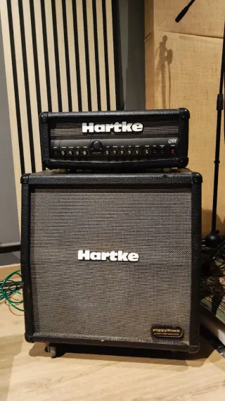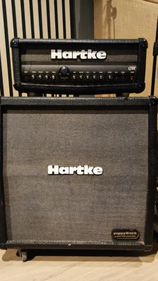 Amplificador de guitarra Hartke GT60 Piggyback. Pequeño desconchado. - Cabezal de amplificador y altavoz. - Potencia: 60 vatios - Tipo: Amplificador híbrido - Canales: 2 Canal 1 (Clean/Crunch): volumen, graves y agudos, con opción de crunch Canal 2 (Drive): ganancia, volumen, graves, medios y agudos - Reverb: de muelles incorporada - Loop de efectos: sí - Entrada para footswitch: sí (cambio de canal) - Salida de auriculares y entrada auxiliar: para practicar en casa