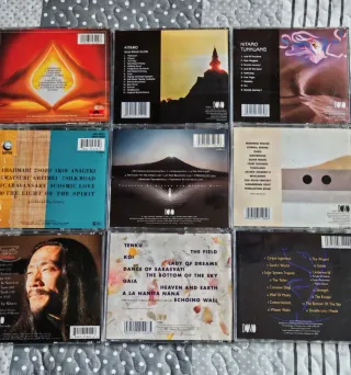 Lote de 9 CDs de Kitaro. En perfecto estado. Incluye dos discos recopilatorios. - Oasis (1979) - Silk Road Suite (1996) - Tunhuang (1996) - Live in America (1991) - The Light of the Spirit (1997) - Mandala (1994) - Best of Kitaro Vol. 1 (1996) - Best of Kitaro Vol. 2 (1999) - Cirque Ingenieux (1997)
