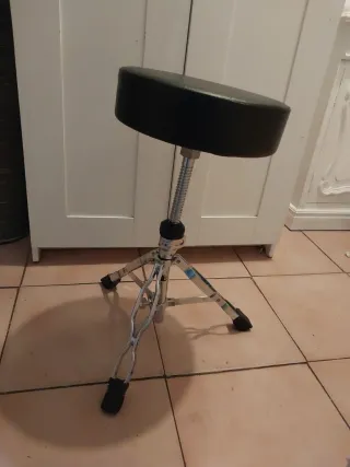 Banqueta para batería con altura regulable. - Asiento acolchado. - Base de trípode metálica. - Patas de goma antideslizantes. -se mueve y no sabemos como ajustarla seguro que algún entendido la arregla. -No envío, pesa bastante