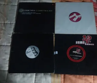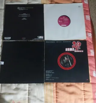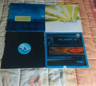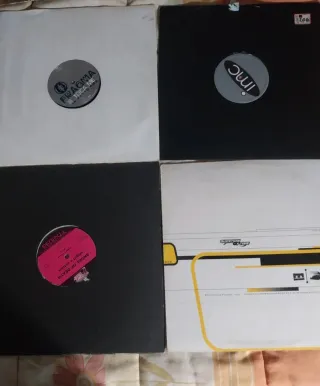Lote de discos de vinilo de música dance y electrónica, editados entre 1999 y 2000. - Incluye Talla 2XLC - Come With Me/Always. - Incluye Musika de MD. - Incluye disco con logo AJ. - Incluye disco con diseño abstracto azul.