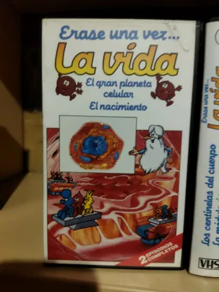 Conjunto de 12 cintas VHS de la serie Érase una vez el cuerpo humano. - El gran planeta celular - Los centinelas del cuerpo - Irrigación sanguínea - El corazón - El cerebro - La vista - La piel - La boca y los dientes - Los riñones - Los huesos y el esqueleto - Guerra a las toxinas - Hormonas