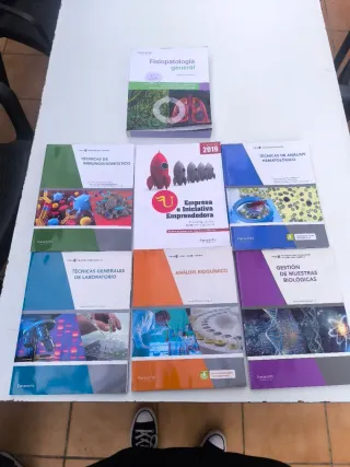 Conjunto de libros, se puede comprar tambien por separado (incrementa el precio) .Gestion de muestra biologica .Fisiopatologia general .Biologia molecular .Tecnicas de inmuno diagnostico .Tecnicas de analisis hematologicos .Tecnicas generales de laboratorio .Analisis bioquimico .Empresa e iniciativa emprendedora