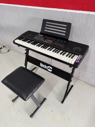Teclado RockJam RJ761 con 61 teclas. Incluye soporte y banqueta. - Soporte para partituras. - Banqueta acolchada. - Pedal de sustain. RockJam RJ761 - Piano de teclado de 61 teclas con banco de teclado, taburete de piano digital, pedal de sostenimiento, lecciones