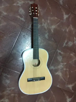 Guitarra acústica clásica de madera clara. Presenta una pequeña rotura. - Cuerpo de madera. - Mástil de madera. - Seis cuerdas.