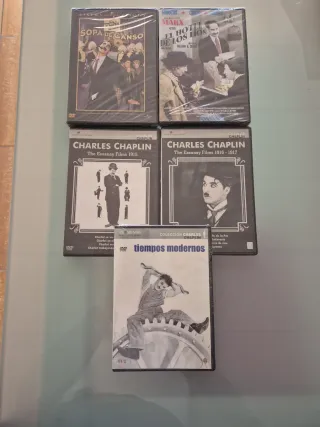 Colección de DVDs de Charles Chaplin, incluyendo Sopa de Ganso, Marx en el Hotel de los Líos, The Essanay Films 1915, The Essanay Films 1916-1917 y Tiempos Modernos. - Películas en formato DVD. - Presentación original.