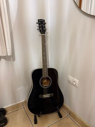 Guitarra Acústica Harley Benton Negra + Soporte