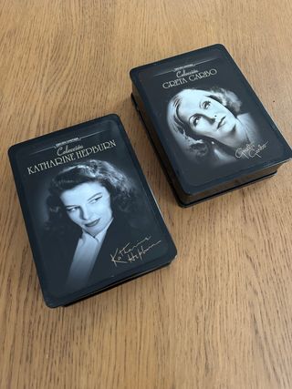 latas de cada actriz, en perfecto estado. Katharine Hepburn 22 euros Greta Garbo 28 euros
