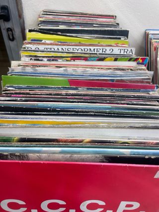 500 vinilos , discos , maxi , single , lp . sibre todo mucha electronica antigua , house , trance y bakalao , y algo soul, jazz ,musica negra, no tengo lista y no se vende por separado. se puede mirar el estado general y revisar mas o menos lo que hay .No negociable .