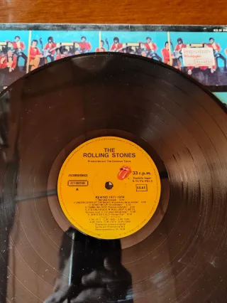Vinilo de The Rolling Stones con varias de sus canciones más conocidas. - Brown Sugar - Undercover of the Night - Start Me Up - Tumbling Dice - It's Only Rock and Roll (But I Like It) - She's So Cold - Miss You - Beast of Burden - Fool to Cry - Waiting on a Friend - Angie - Respectable