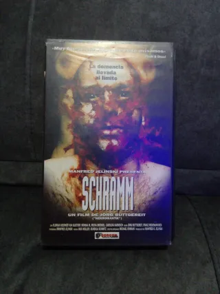 Película de terror en formato VHS - Título: Schramm - Director: Jörg Buttgereit - Presentada por Manfred Jelinski