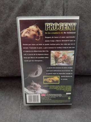 Película de terror y ciencia ficción Progeny en formato VHS. - De los creadores de Re-Animator. - Hay cosas en el universo que no se pueden explicar... - Incluye nombres de actores como Arnold Vosloo, Brad Dourif, Lori Cardille, Jan McWhorter y Wilford Brimley.