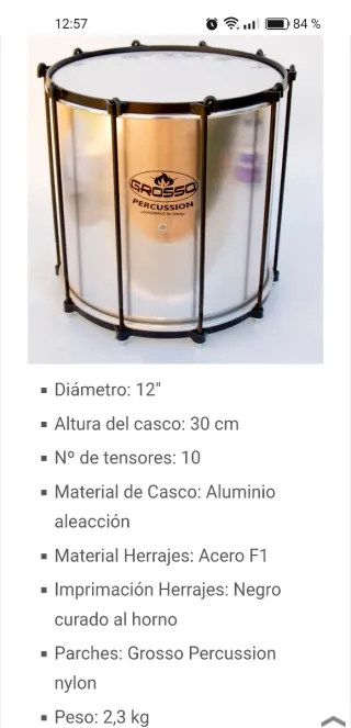 Surdo medio de batucada se vende por no usar tiene el parche un marcado no roto aluminio light 16pulgadas