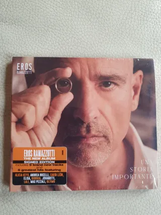 Edición firmada del álbum Una Storia Importante de Eros Ramazzotti. Incluye 9 temas nuevos y 6 grandes éxitos. - Incluye colaboraciones con Alicia Keys, Andrea Bocelli, Carín León, Elisa, Giorgia, Jovanotti, Lali, Max Pezzali y Ultimo. - Edición firmada por el artista. NUEVO Y PRECINTADO No negociable. Fotos añadidas de mi CD particular para que se vea como viene la tarjeta firmada. Se envía CD NUEVO Y PRECINTADO.