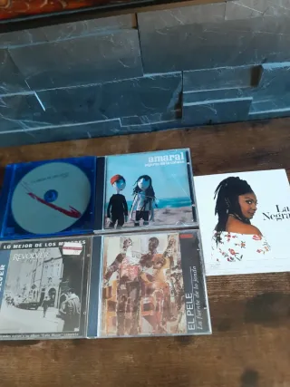 Lote de 4 CDs de música española. - Amaral - Pájaro en la cabeza sin contraportada - Revolver - Lo mejor de los mejores din contraportada - El Pele - La fuente de lo jondo - La Oreja de Van Gogh - (CD visible) Precio por el lote