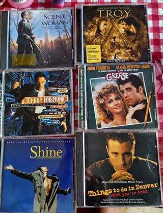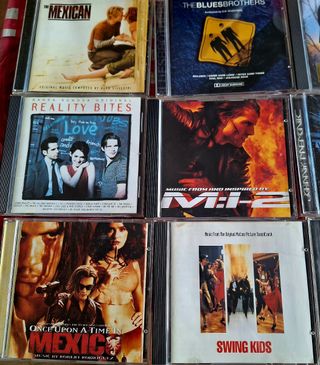 16 Cds bandas sonoras 📣de 💿Troya 💿 Grease 💿El Mexicano (Banderas) 💿Things to do it Denver 💿Shine 💿The Mexican(Brad Pitt) 💿 mision impossible II 💿Swing Kids 💿Jhonny Menemonic 💿Esencia de mujer 💿Reality Bites 💿the Blues Brothers 💿100% cine 💿Western Films Music vol.1(Ennio Morricone) 💿Western Films Music vol.2(Ennio Morricone) ➡️ A 3E cada una.( si te llevas mas de dos precio negociar) ( mirar fotos 📸) ( mas música en mi perfil🎶 )