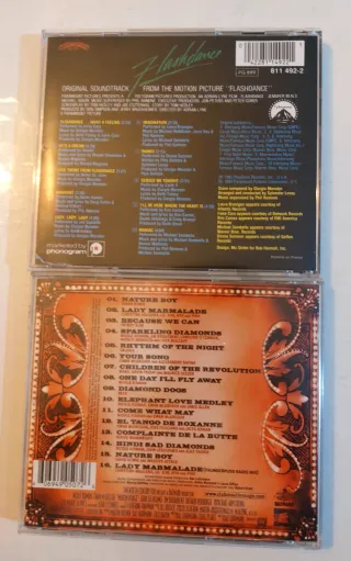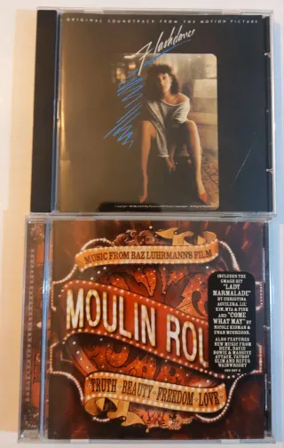 Dos bandas sonoras originales de películas icónicas. - Flashdance (Original Soundtrack From The Motion Picture) - Moulin Rouge! (Music From Baz Luhrmann's Film), incluye Lady Marmalade y Come What May.