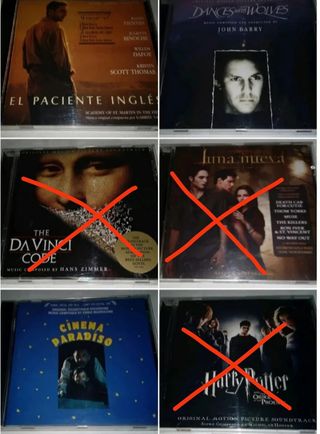Vendo 13 Bandas sonoras de cine y TV compuestas por: -"Troya". -"Braveheart". -"1492". -"El Paciente Inglés". -"Bailando con lobos". -"Cinema Paradiso". -"Quédate a mi lado". -"Siete años en el Tíbet". -"Slumdog Millonaire". -"Una música de Cine Español/Vol 1. -"Los Clásicos en el Cine". -"Star Trek:Deep Space Nine". -"Congo". -A 10€ cada CD excepto "Congo "(5€)/No tiene carátula. -Envío por Correos.