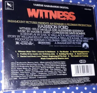 Banda sonora original de la película Witness. (Testigo en peligro) - Música compuesta por Maurice Jarre. - Incluye VCD 47227 DIGITAL. - Publicado en 1985.