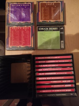 Conjunto de 11 CDs simples y 3 dobles originales con poco uso y prácticamente nuevos, con su archivador, rock y blues más bien.