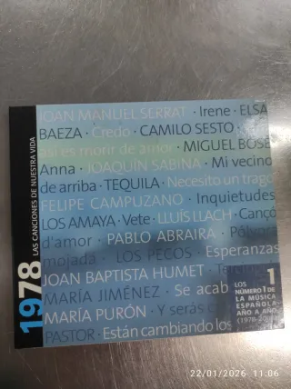 CD recopilatorio de música española del año 1978. - Incluye canciones de artistas como Joan Manuel Serrat, Camilo Sesto, Miguel Bosé, Joaquín Sabina y más. - Título: Las Canciones de Nuestra Vida 1978. - Formato: CD.