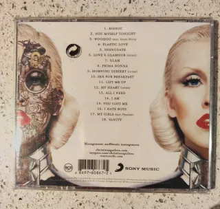Álbum Bionic de Christina Aguilera, completamente precintado. - Lista de canciones: 1. Bionic 2. Not Myself Tonight 3. Woohoo (feat. Nicki Minaj) 4. Elastic Love 5. Desnudate 6. Love & Glamour (Intro) 7. Glam 8. Prima Donna 9. Morning Dessert (Intro) 10. Sex for Breakfast 11. Lift Me Up 12. My Heart (Intro) 13. All I Need 14. I Am 15. You Lost Me 16. I Hate Boys 17. My Girls (feat. Peaches) 18. Vanity - Incluye logos de RCA y Sony Music.