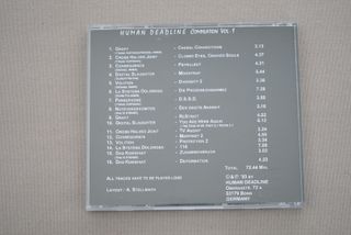 Various – Human Deadline Compilation Vol. 1 Label: Human Deadline – HD-CD01 Format: CD, Compilation Country: Germany Released: 1993 Genre: Electronic Style: EBM, Industrial Se realizan envíos. Se pueden hacer lotes con los diferentes productos a la venta, para optimizar los gastos de envío y enviarlos en el mismo paquete. Se rebajan precios, en caso de realizar packs con diversos artículos. No dude en preguntar sobre cualquier cuestión.